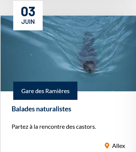 Tous les mardis du 4 juin au 13 août, partez à la rencontre des castors ! Dès la tombée de la nuit, installez-vous à l’affût pour tenter d’apercevoir ce discret mammifère.